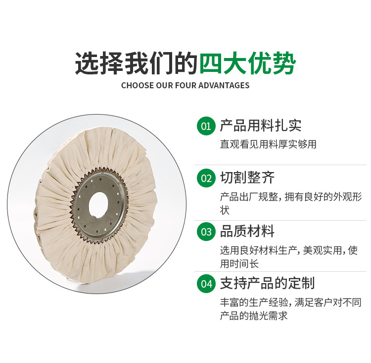 麻輪 劍麻輪 麻輪廠(chǎng) 拋光麻輪 麻輪布輪 拋光布輪 布輪 麻布輪采用高強(qiáng)全樹(shù)脂砂布為原材料,使用高強(qiáng)粘度樹(shù)脂膠,產(chǎn)品質(zhì)量穩(wěn)定,外觀美觀。適用行業(yè)非常廣泛,可用于各類(lèi)金屬、非金屬產(chǎn)品表面研磨、拋光。