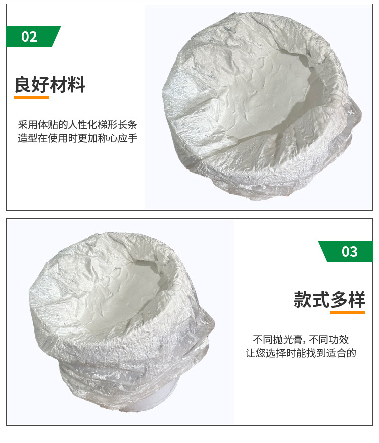 拋光臘 白蠟 拋光膏 金屬拋光膏 工業(yè)白蠟 工業(yè)蠟 不銹鋼拋光臘采用高強全樹脂砂布為原材料,使用高強粘度樹脂膠,產(chǎn)品質量穩(wěn)定,外觀美觀。適用行業(yè)非常廣泛,可用于各類金屬、非金屬產(chǎn)品表面研磨、拋光。
