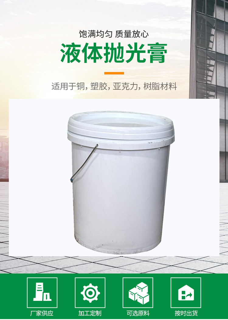 優(yōu)良白臘,采用一級拋光微粉及進口油料,通過科學的配方精制而成;本品主要是針對亞克力(又稱壓克力或有機玻璃或PMMA或亞加力),水晶制品,透明制品拋光的.含油量足,能預防與高速拋光產(chǎn)生熱量燒傷壓克力表面,且能有效的去除產(chǎn)品表面的刮痕,出光速度快,省磨耐拋.是一款性價比高的精拋光膏.通常配合風輪或漂白布輪使用,用于產(chǎn)品的尾道工序出光.清光有著亮度好!去絲強,電鍍好清洗等特點!本產(chǎn)品為每件20條每條2公金,歡來電袷談!
