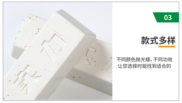 其內含豐富有的油脂,因選材講究,更具有超卓的光澤度及切削力,具有相當不錯拋光效果,拋后紋路光滑細膩。不會燒傷工件,一般配合粗布輪粗拋使用,價格比較實惠。
