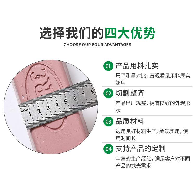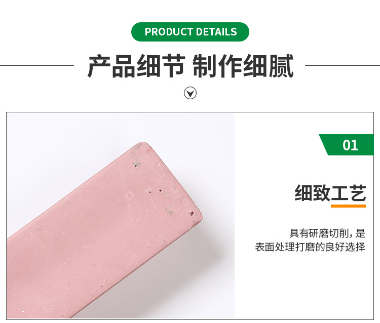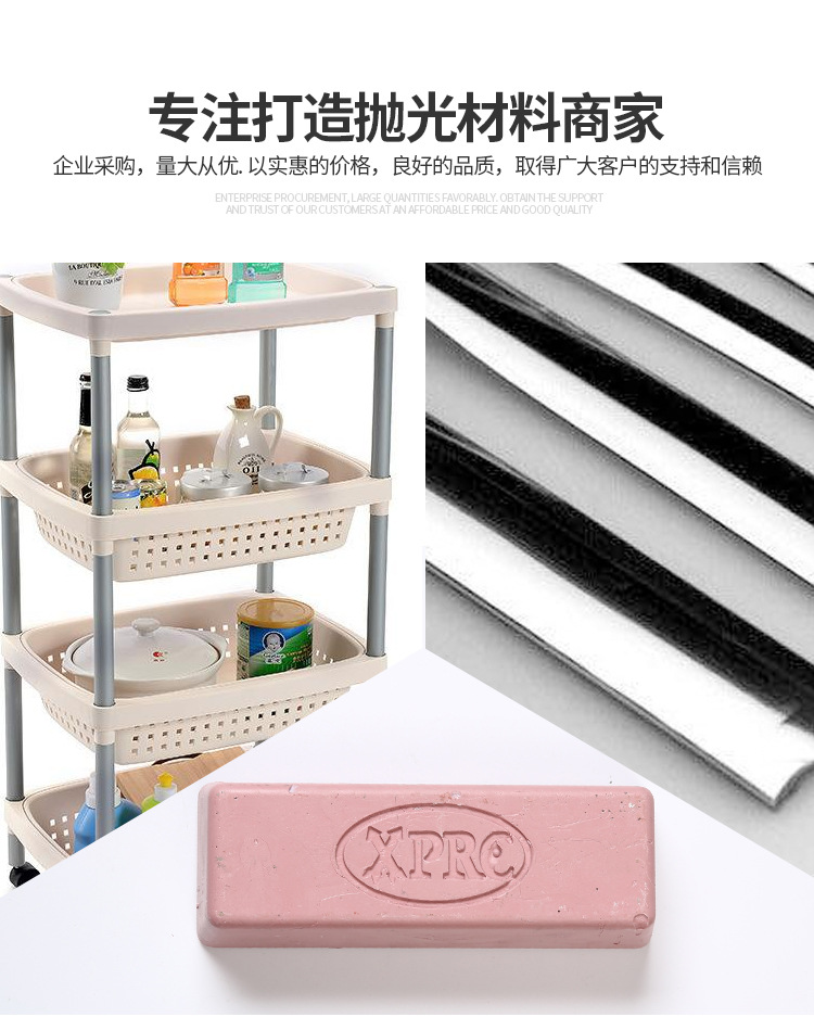 其內含豐富有的油脂,因選材講究,更具有超卓的光澤度及切削力,具有相當不錯拋光效果,拋后紋路光滑細膩。不會燒傷工件,一般配合粗布輪粗拋使用,價格比較實惠。