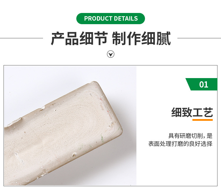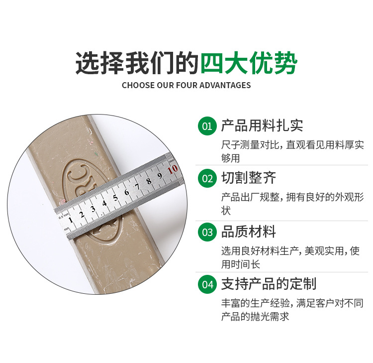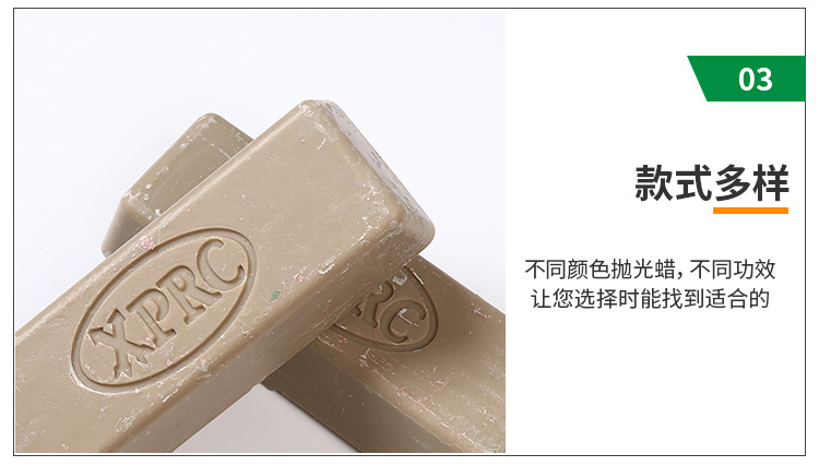 型號:5號黃臘。一般情況下用不同的顏色表示不同品種的拋光臘,避免使用時(shí)混亂。高含量的磨料可以加速整個(gè)拋光過程。這個(gè)過程是拋光臘拋光輪表面移動而使材料變得光滑。