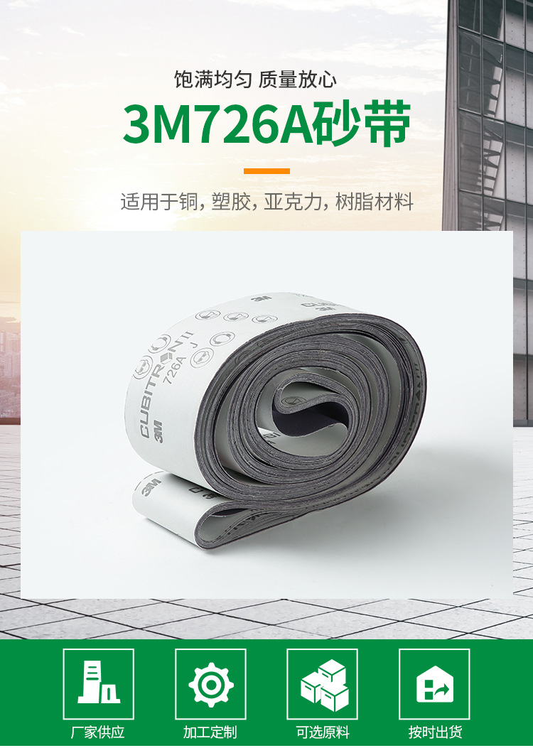 打磨拋光3M726A砂帶適用五金衛(wèi)浴潔具汽車軍工砂布卷砂紙打磨